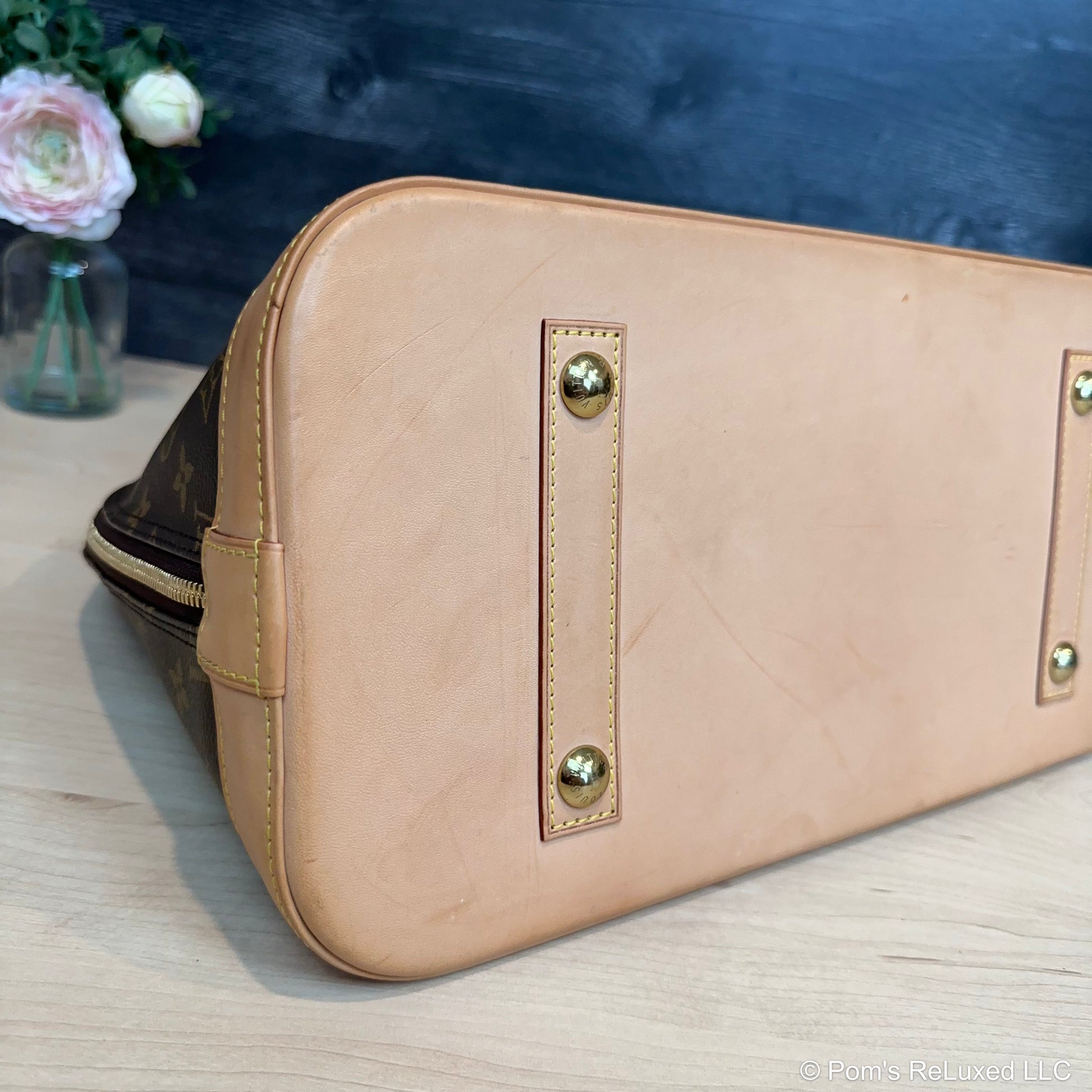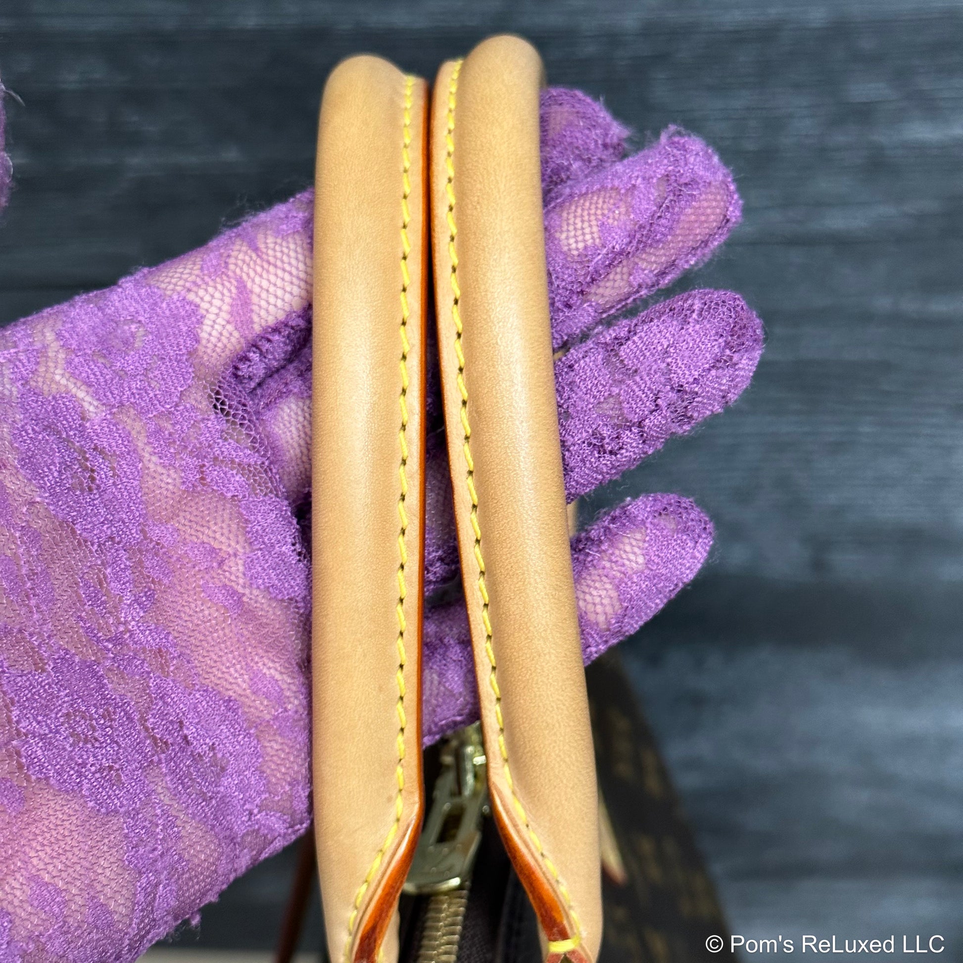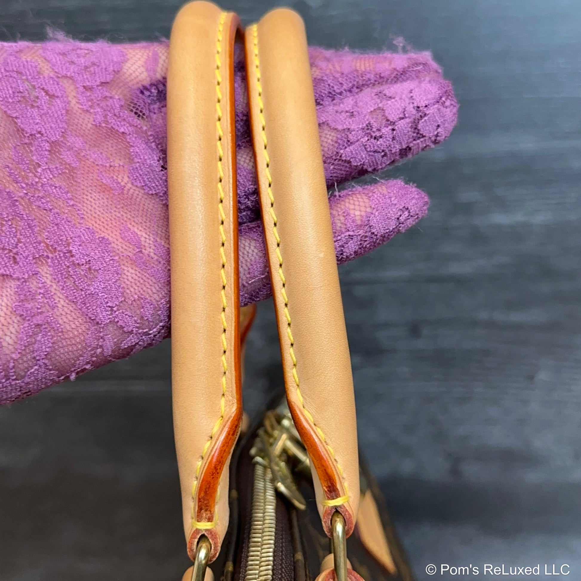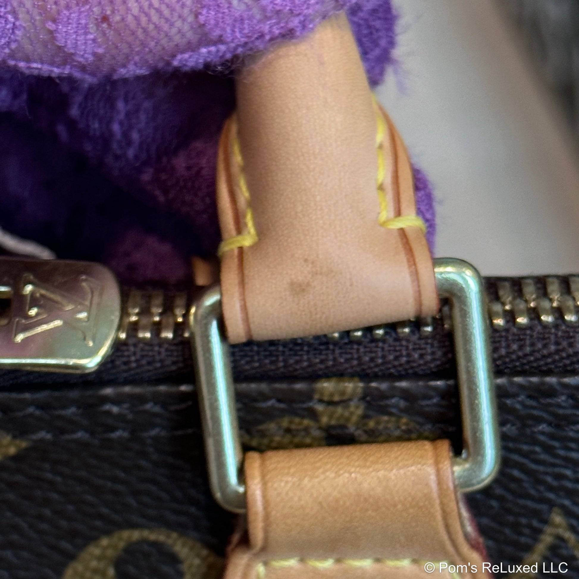 In very good preowned condition. Canvas is vibrant and beautiful. The trim and handles have developed a lovely honey patina. There's very light stains and scuffs consistent with a used bag but still look beautiful.the Hardware is bright and shiny with normal wear. Interior is clean. No odor. Comes with lock and clochette with 2 keys.