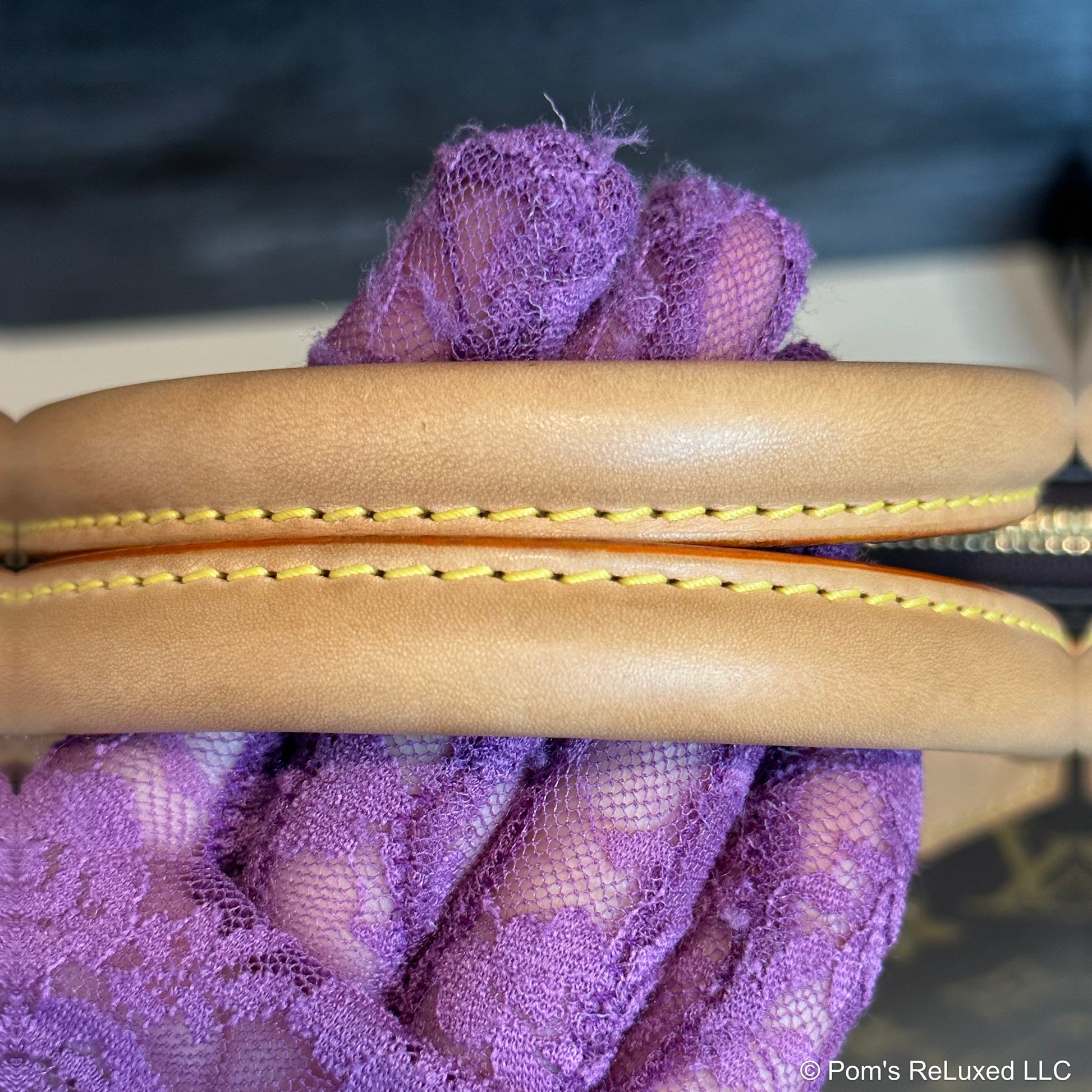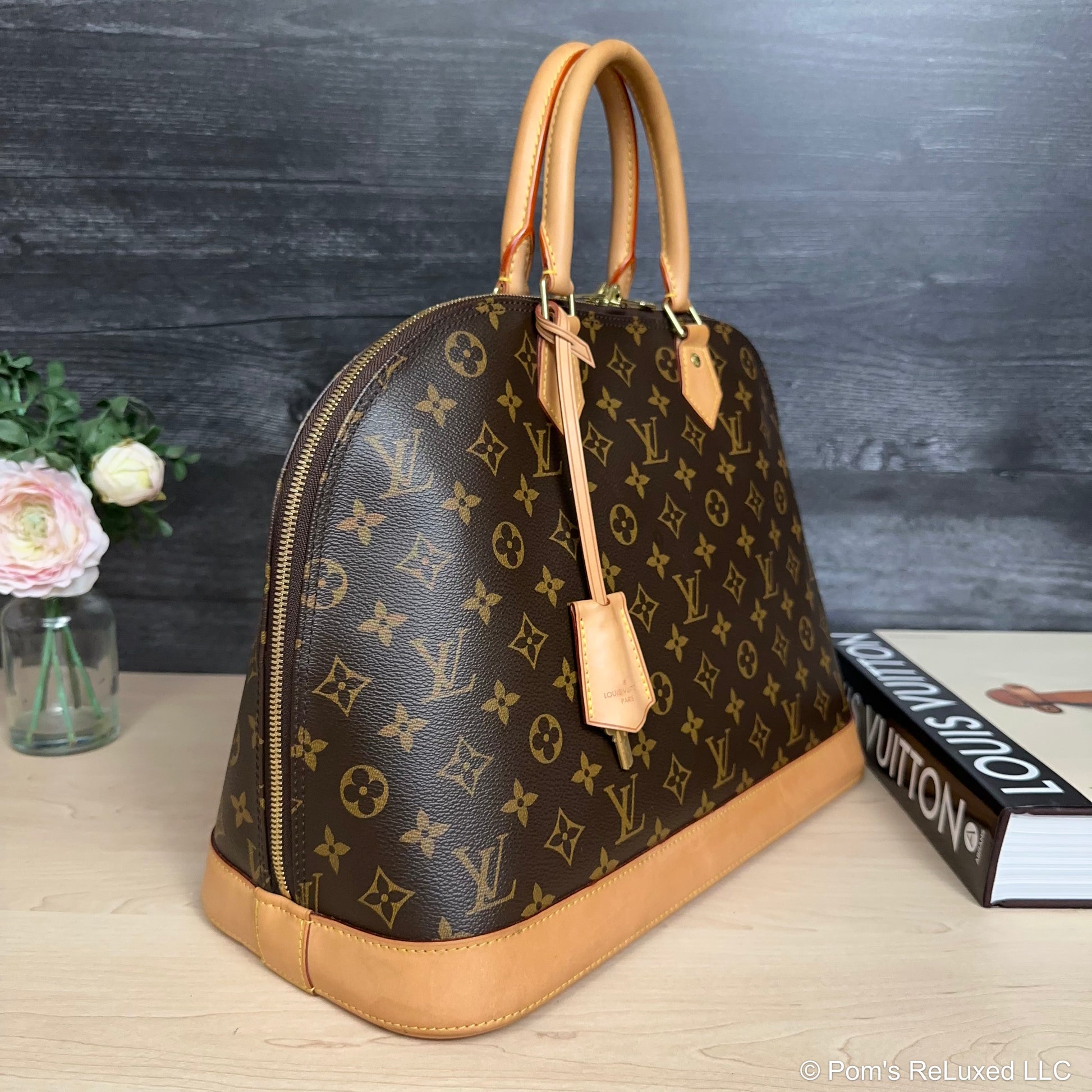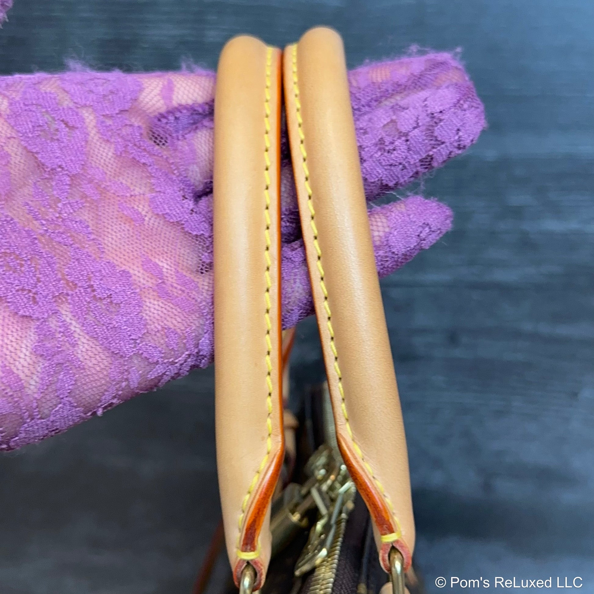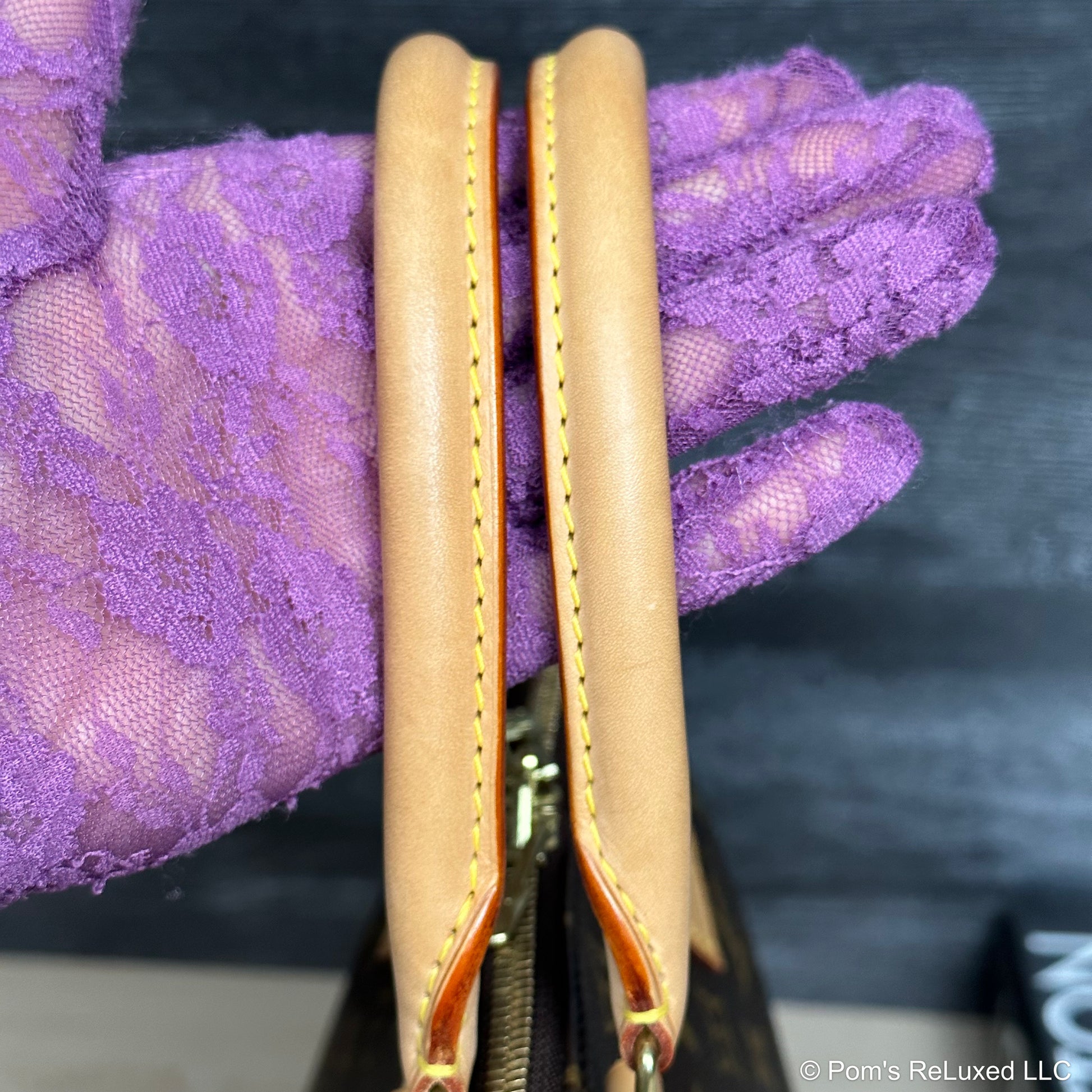 In very good preowned condition. Canvas is vibrant and beautiful. The trim and handles have developed a lovely honey patina. There's very light stains and scuffs consistent with a used bag but still look beautiful.the Hardware is bright and shiny with normal wear. Interior is clean. No odor. Comes with lock and clochette with 2 keys.