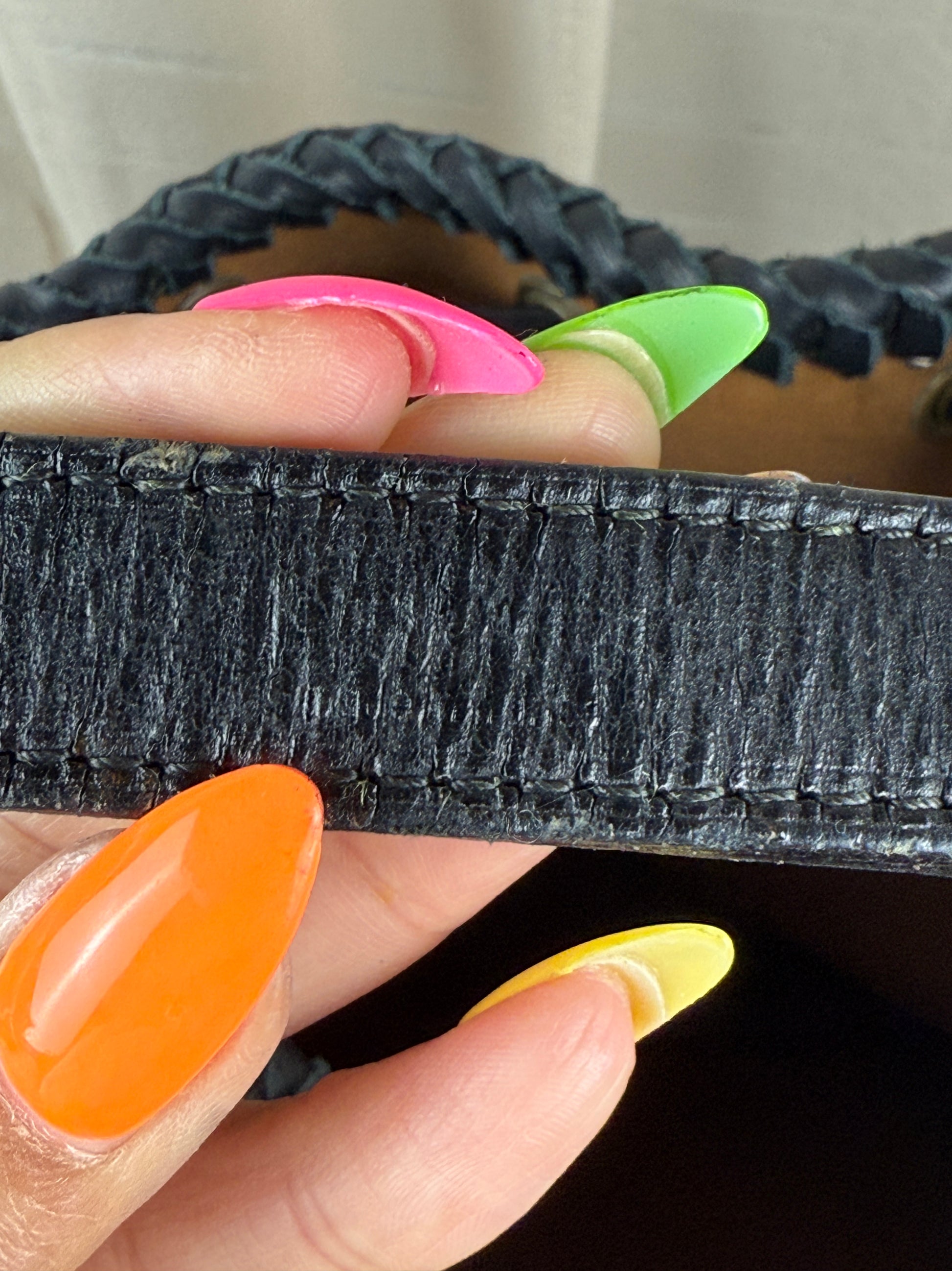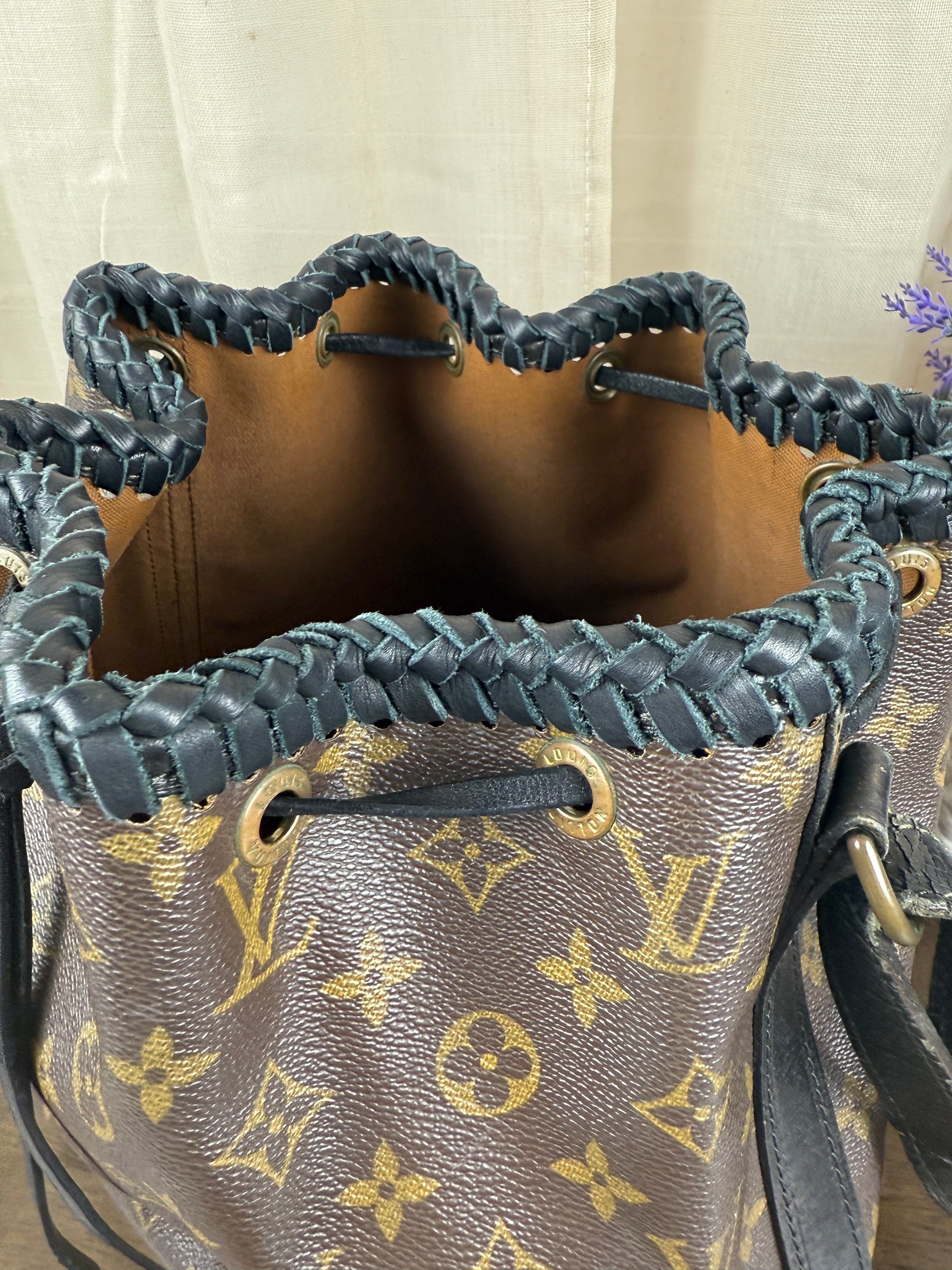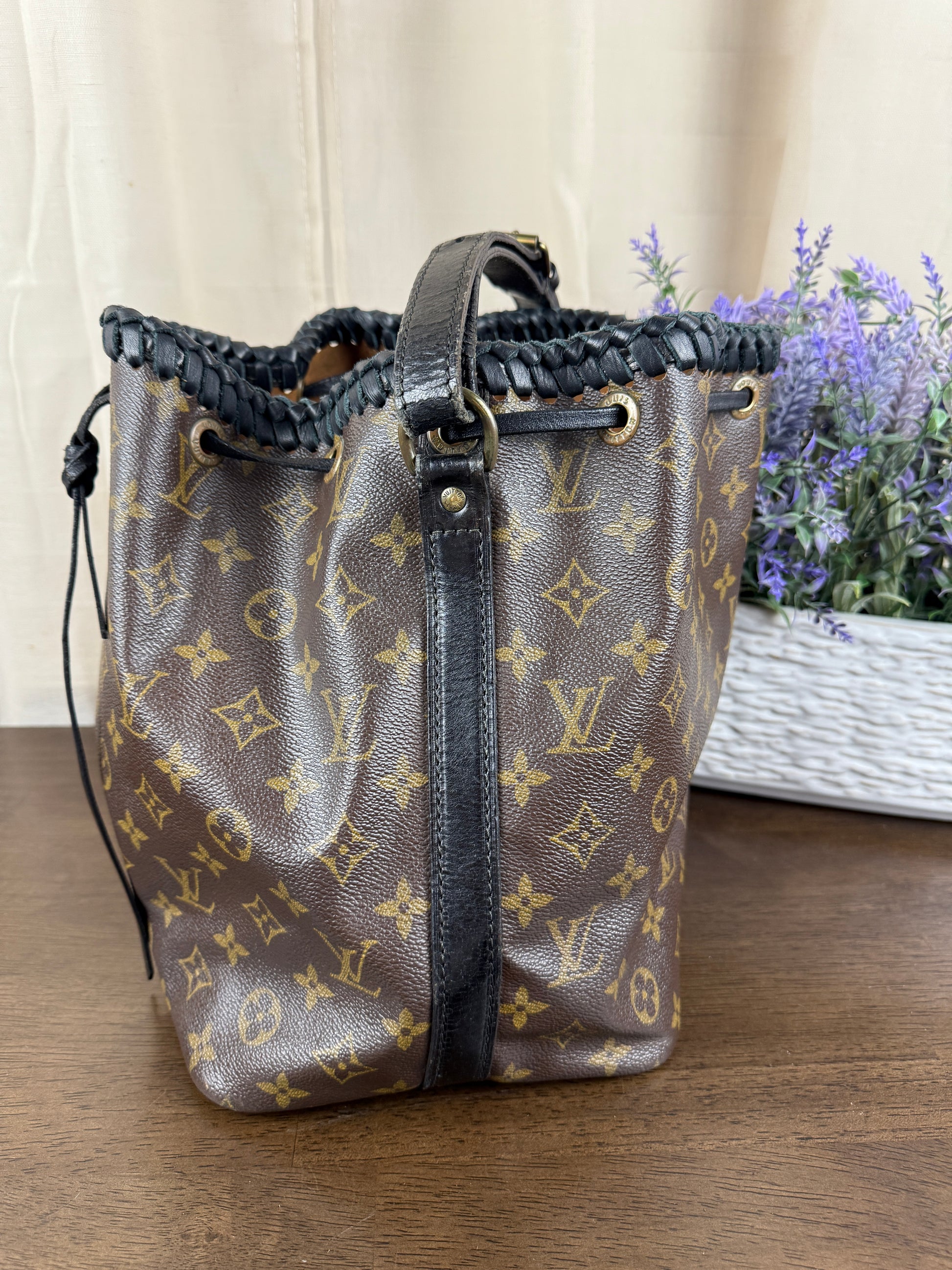 Vintage with a twist — this Petite Noé features custom black-dyed leather trim and hand-braided detailing for a bold, artisan look.