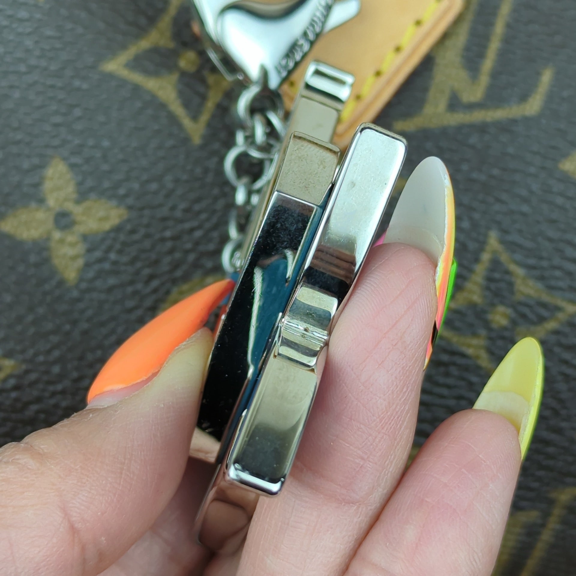 Excellent Preowned Condition. Make your bag pop with this gorgeous LV collectible! This charm features two Monogram flowers and the classic LV logo in a rich cyan blue, crafted from resin textured like Epi leather. The silver-tone hardware adds a sleek, polished finish. It can be clipped to most bag rings or used as a stylish key holder. A perfect gift or collectible for any LV lover