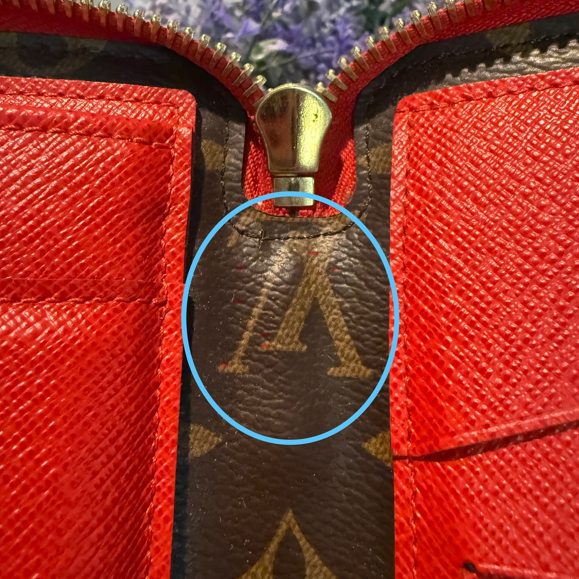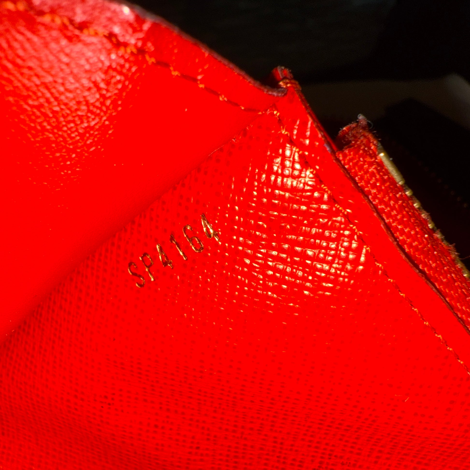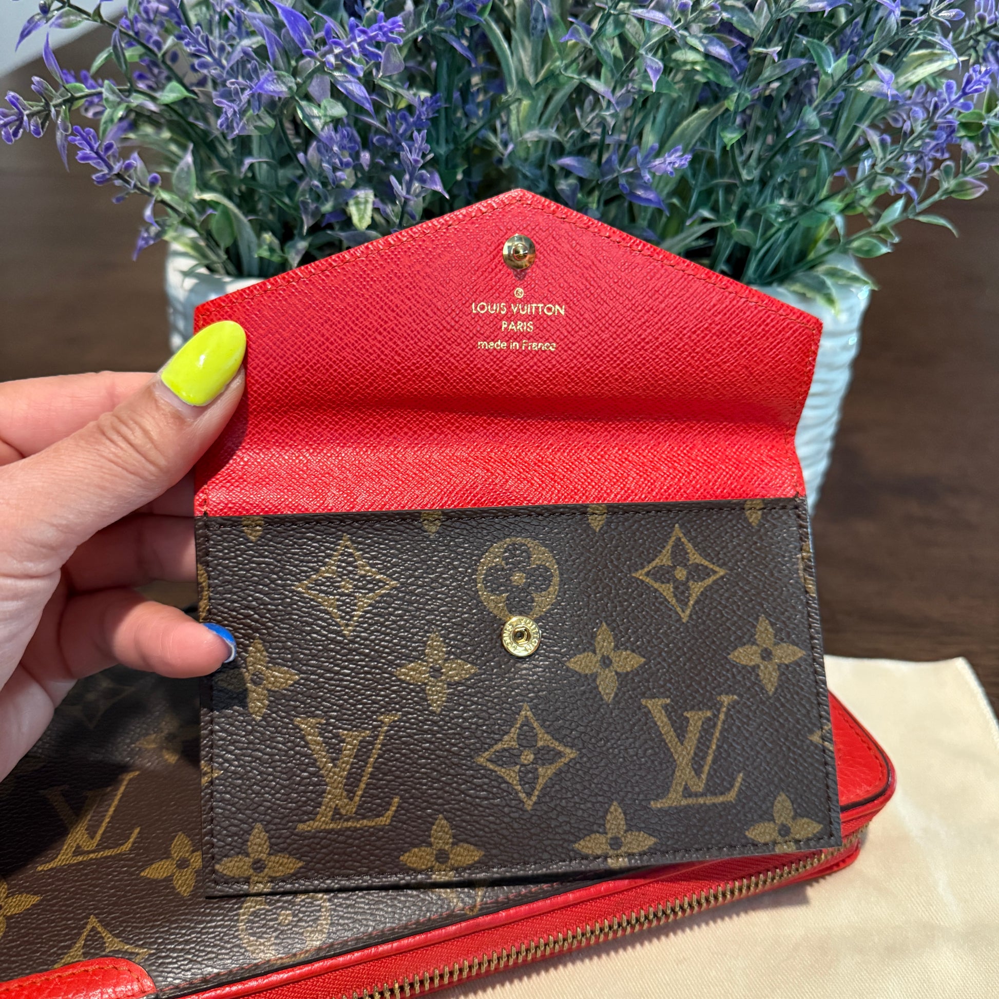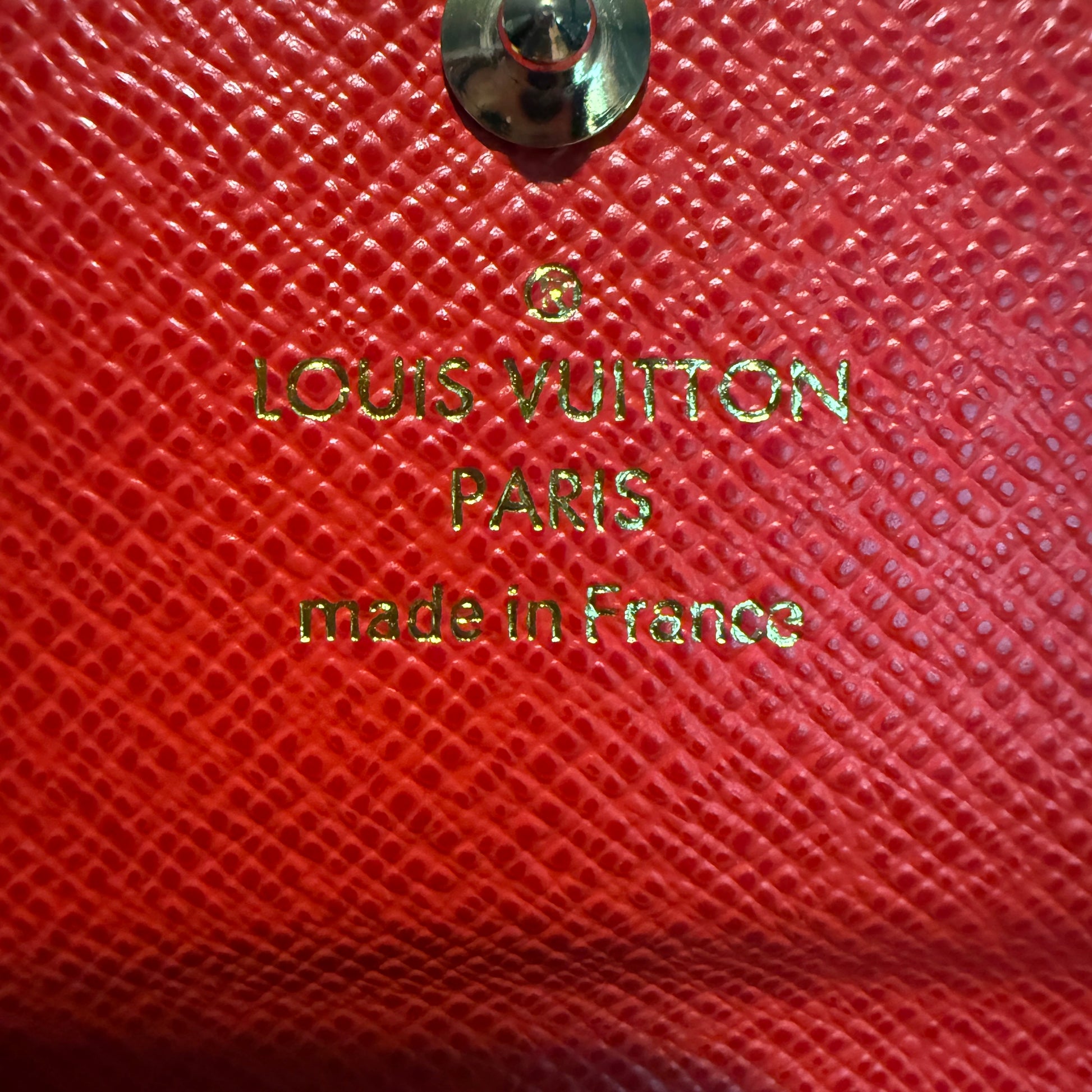 Discontinued and rare, this clutch is perfect for daily and travel essentials. Featuring gold-tone hardware, red leather trim, corner reinforcements, and a top handle for clutch use. The wrap-around zipper reveals multiple card slots, a bill pocket, a zipper compartment, and a removable wallet. Ideal for those who value top-notch organization. Don't miss out!