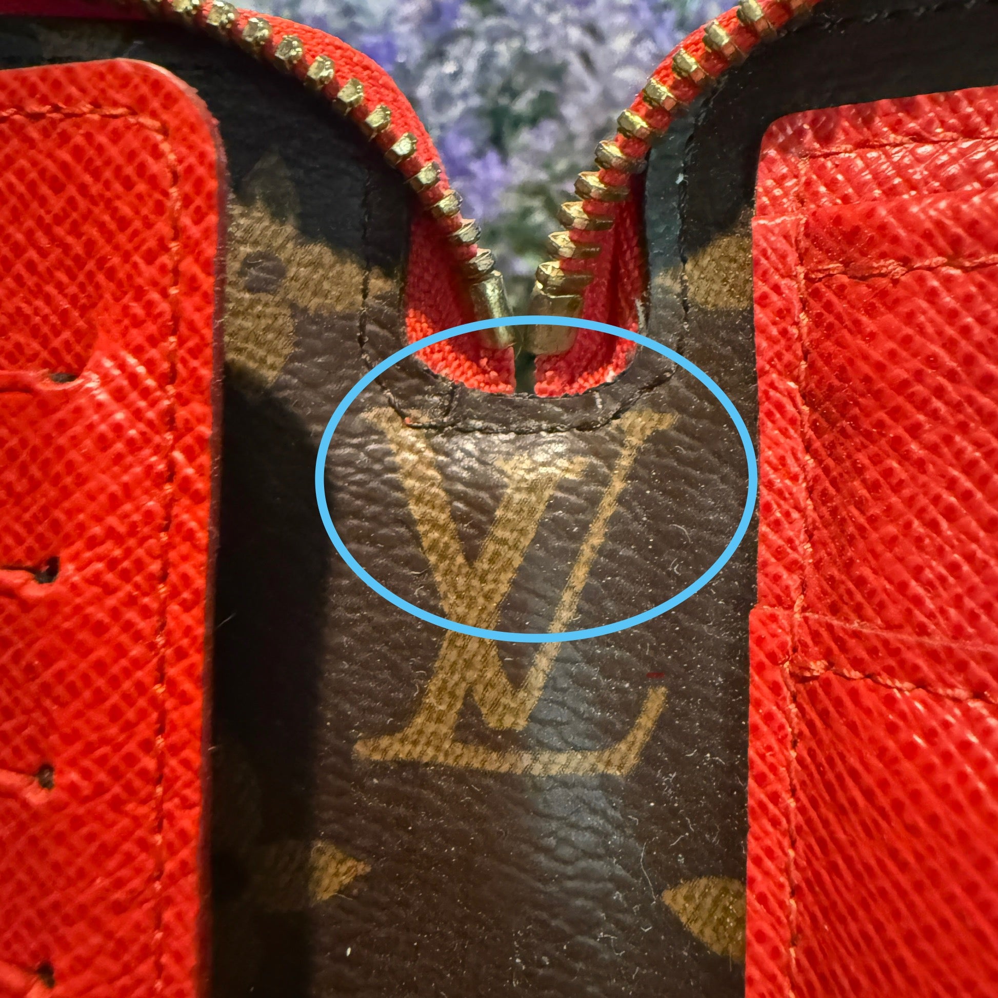 Condition: Good preowned. The exterior monogram canvas is clean with no cracks. Leather trim shows light wear. Interior lining and pockets are great with no stains, cuts or tears. Note: Tiny cracks along the tops of the interior spine, common for this piece, are noted in photos. Hardware is shiny with normal wear and surface scratches. Zippers work smoothly. Removable wallet is in excellent shape.