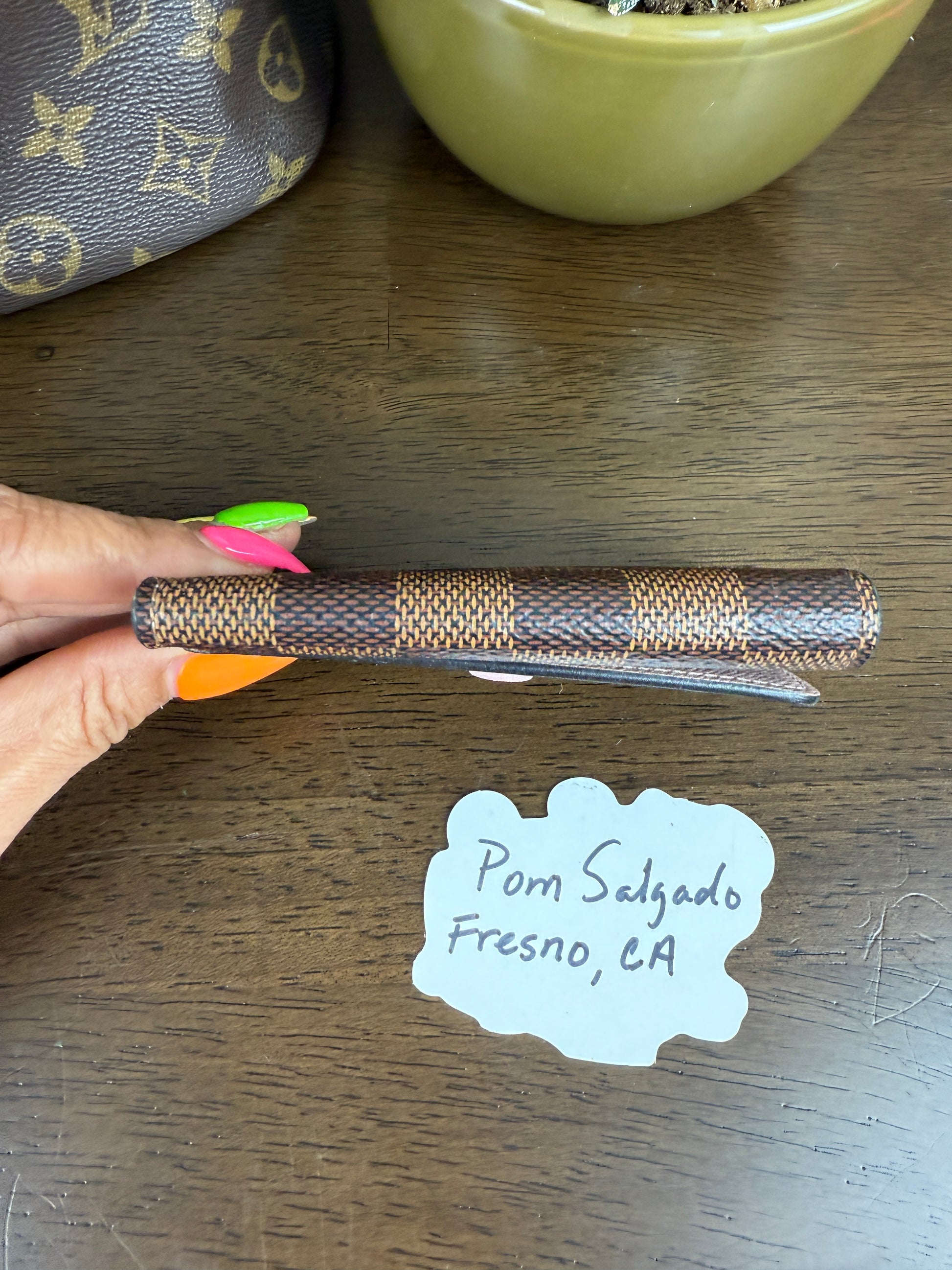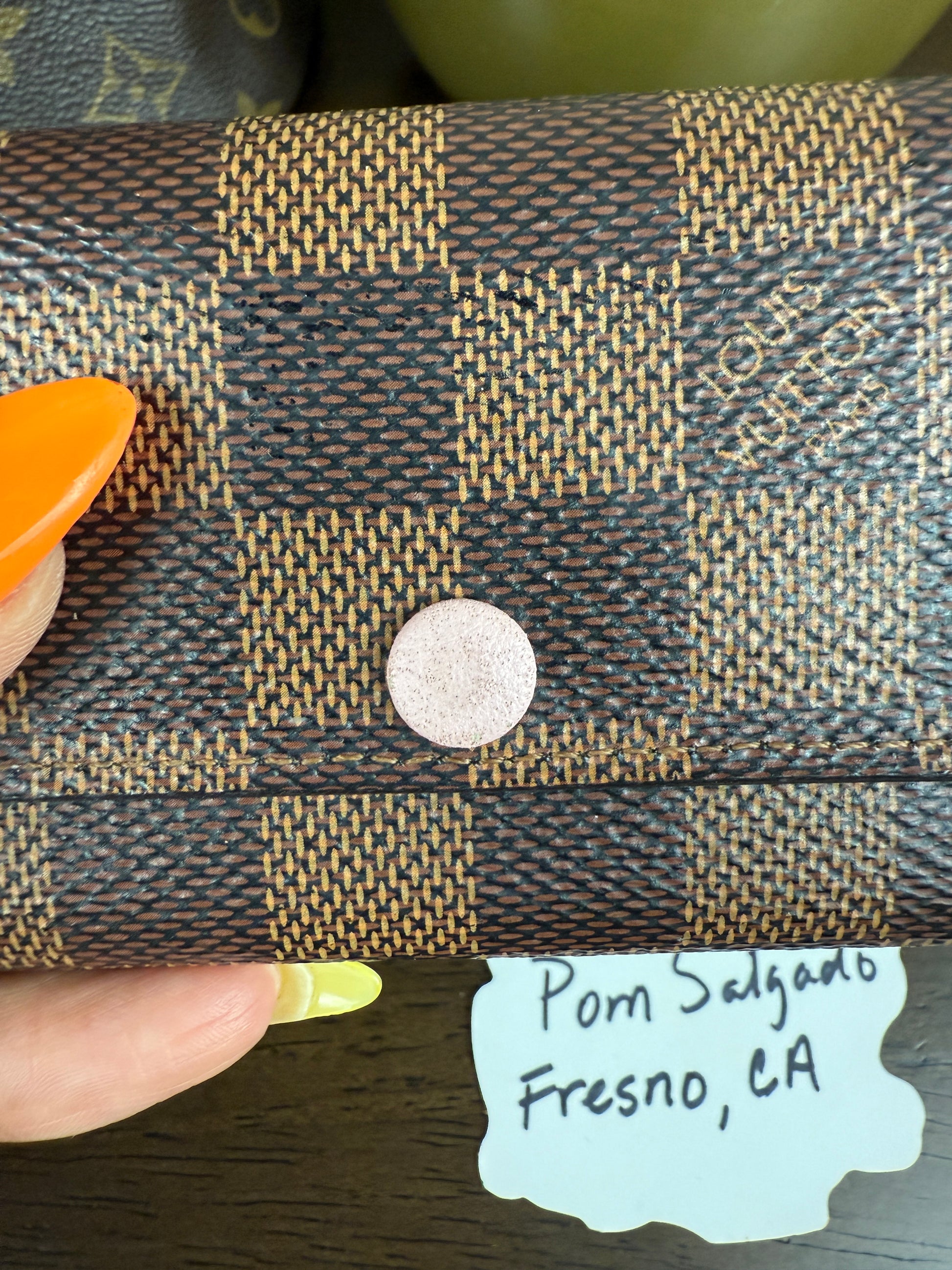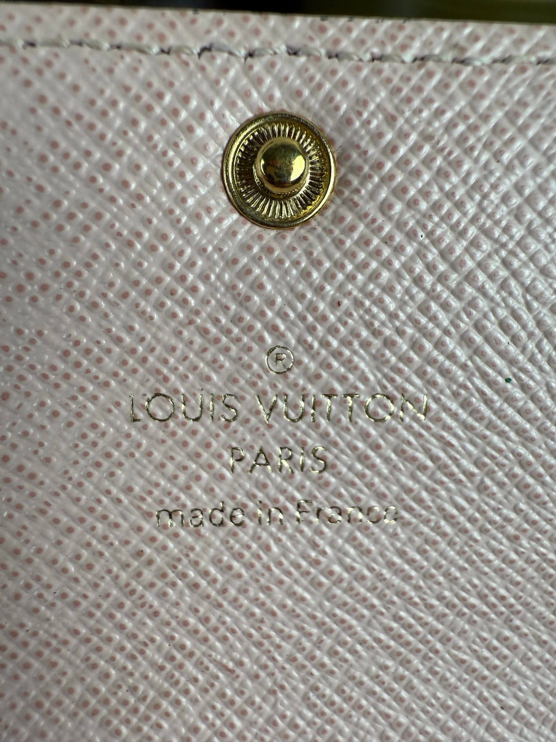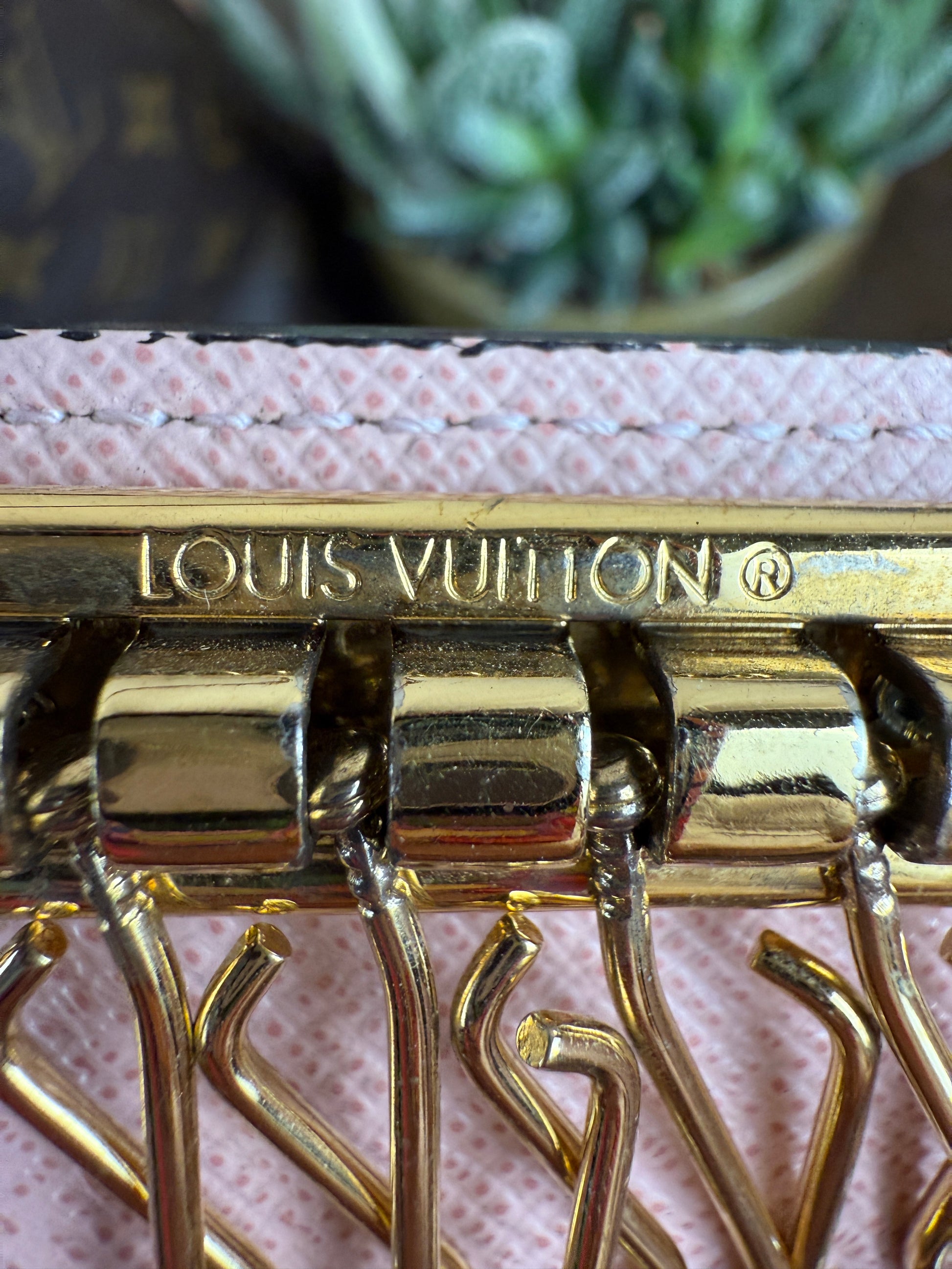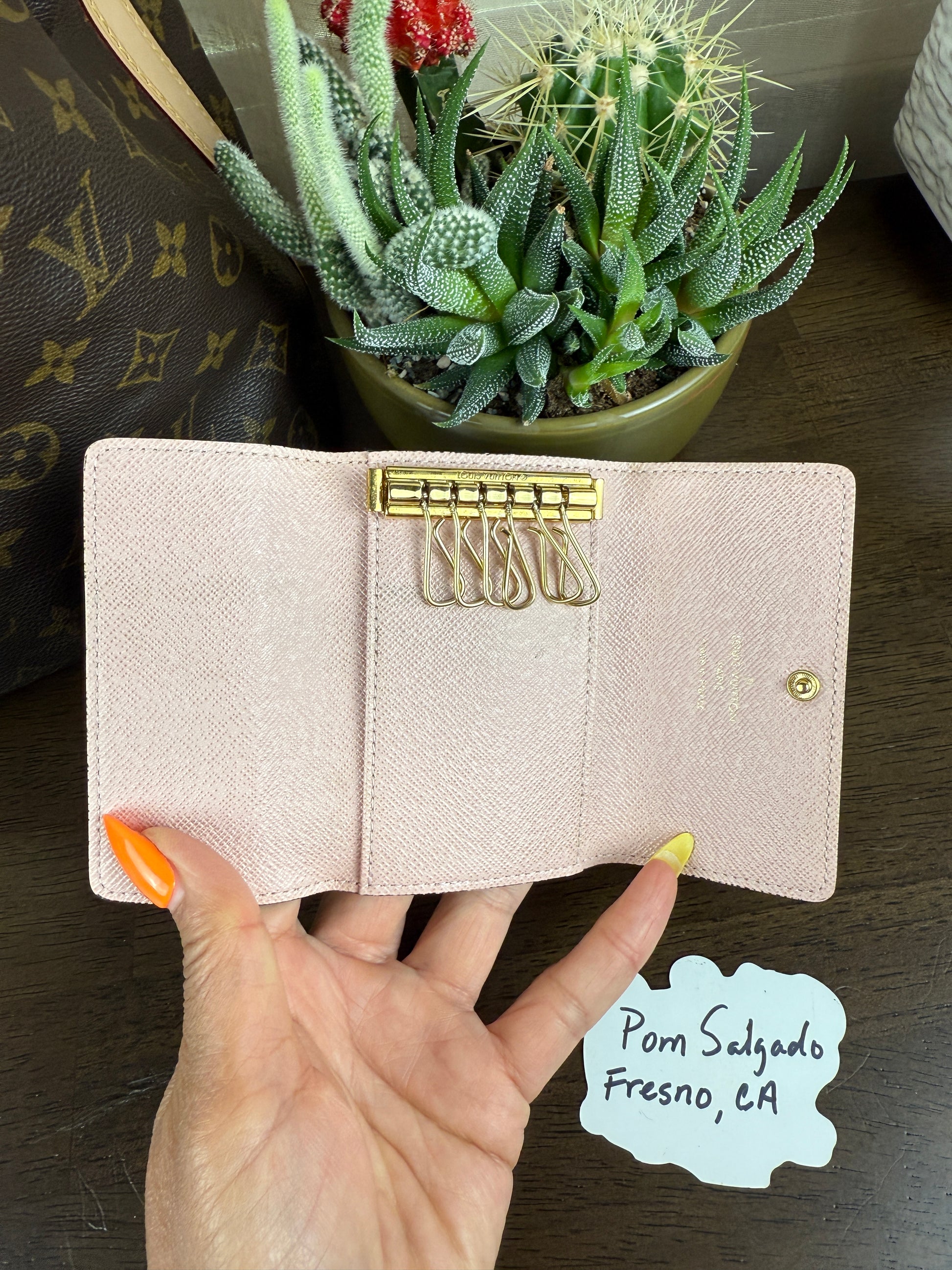 Keep your keys in check with this chic and compact key holder in the classic Damier Ebene canvas, featuring a soft Rose Ballerine pink interior and gold-tone hardware. Pretty on the outside, practical on the inside!