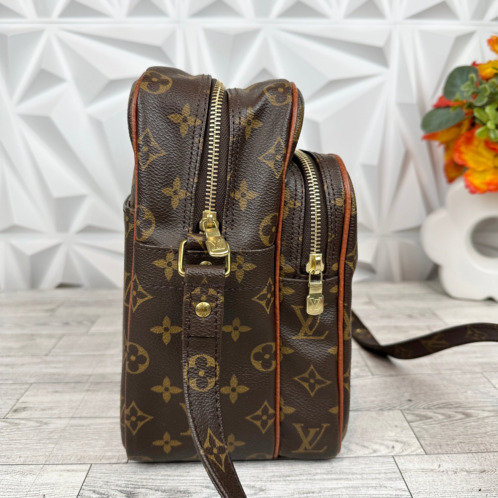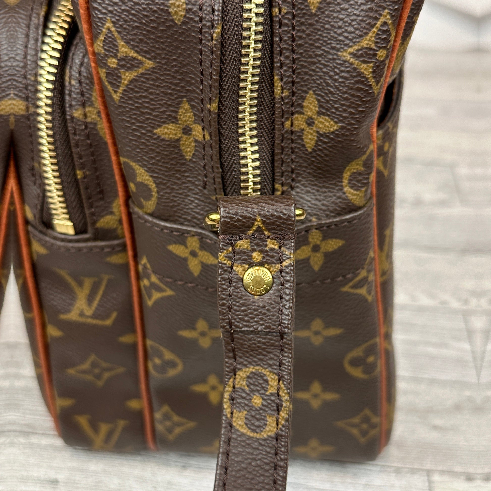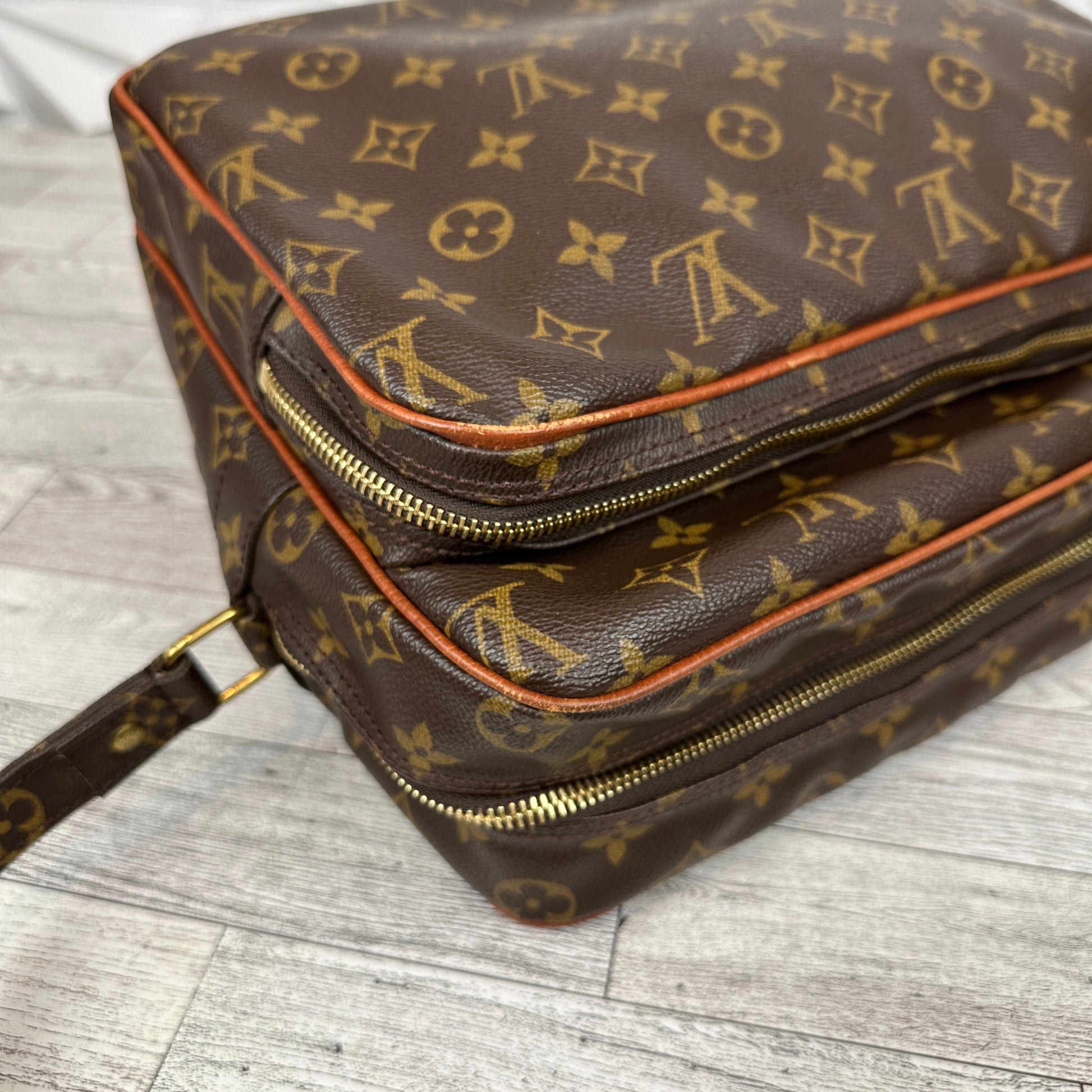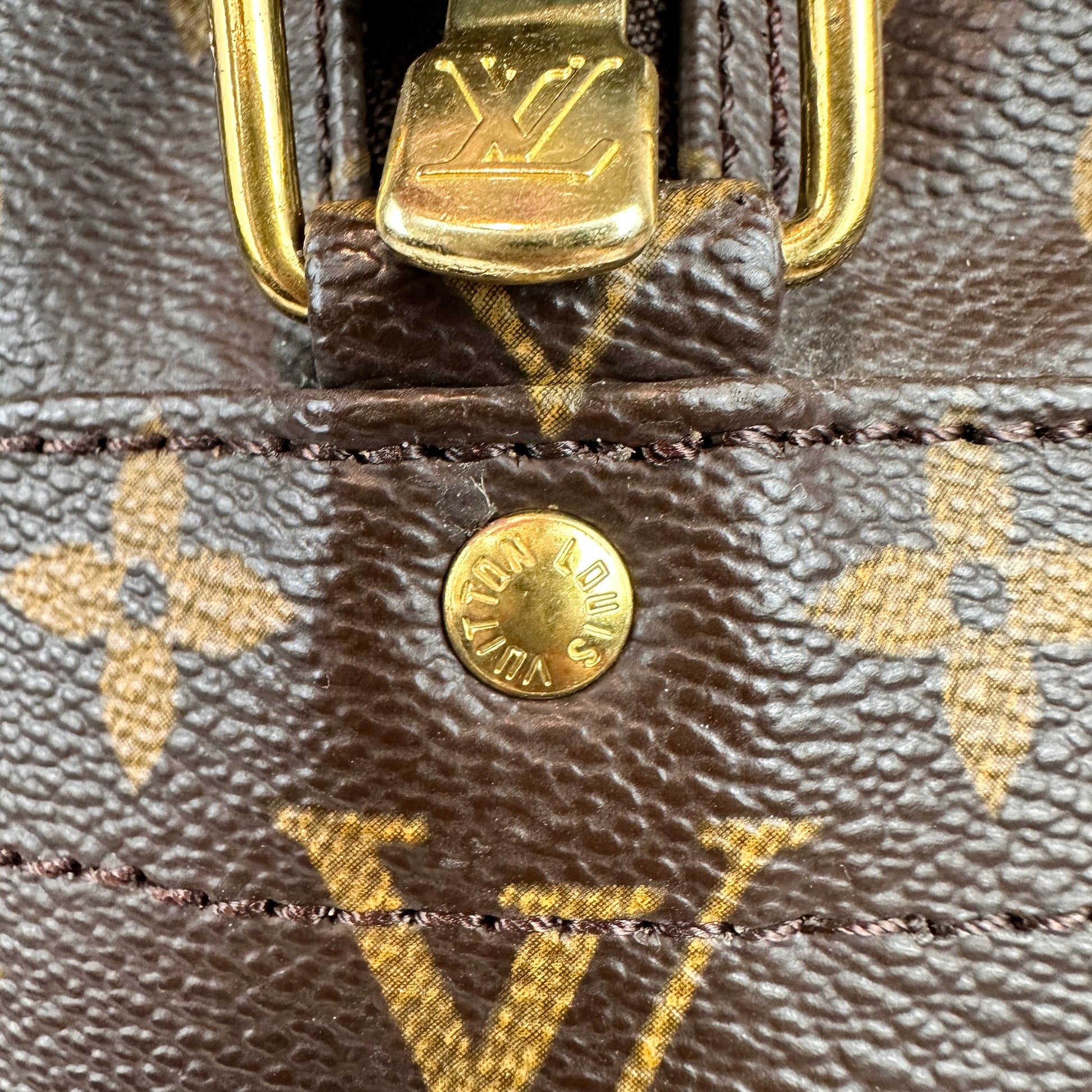 This is a predate vintage bag, circa 1970's in great condition. The canvas is in excellent condition, with no cracks and vibrant monogram. While there are light signs of wear on the piping, the edges remain intact and undamaged. The hardware is bright and shiny. The interior and pockets are overall in good condition. No stickiness or peeling.