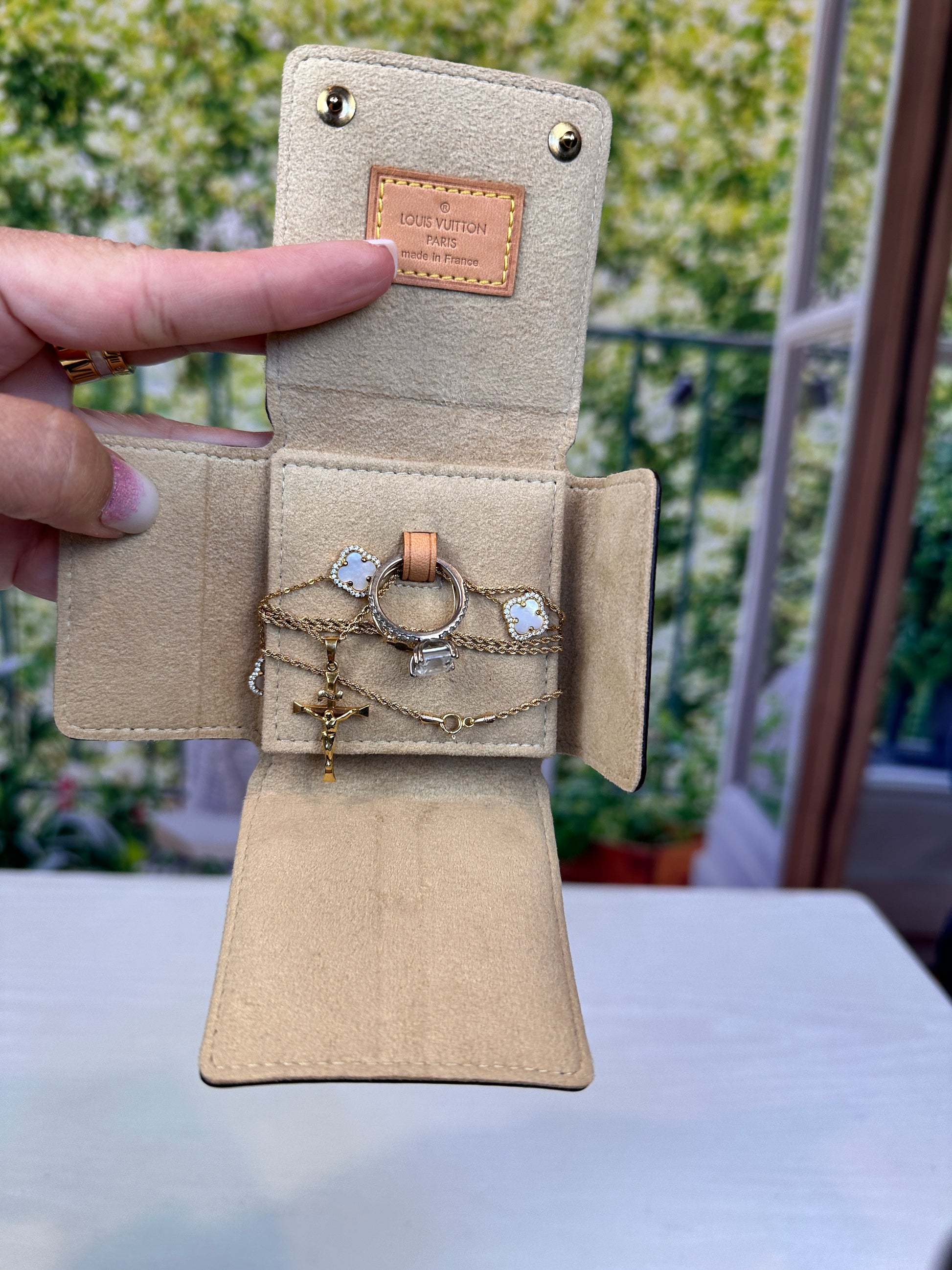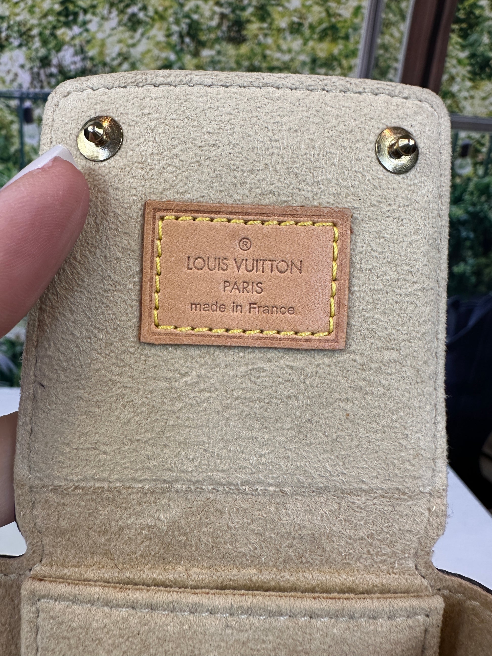 A simple, slim and compact Jewelry Case crafted from classic Monogram canvas with beige alacantre lining and removable internal pad with vachette attachment. Perfect for travel or just inside your larger Vanity Case.
